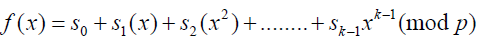 Shamir [4] developed the idea of a (k, n)-threshold based secret sharing technique (k ≤n). The technique allows a polynomial function of order (k -1) constructed as,