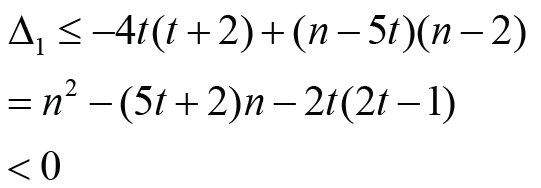 𝓂3≤ 𝓃 − 2,𝓂3=0, that is, 1 𝓂 ≥ t + 2 . If 𝓃 ≤ 5t, clearly, we have Δ1 ≤ 0 .For n >