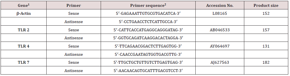 2Primers for Toll-like receptors and β-actin were described by Sato et al. (2009) and Bai et al. (2008), respectively.