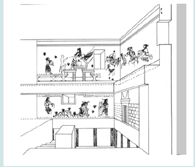 Consequently, the first two characteristics (the topography and the scalar construction as well as the time) apply in the case of the crocus gatherer’s fresco of the peak sanctuaries. But what happens with the absence of figurines from the imaging? This cannot reverse our correlation for the following reasons: First, figurines are not found at Akrotiri as it is noted [37]. Consequently, this may be is a local peculiarity. Second, if we accept the view that the figurines represent the worshipers, their absence is not strange because the worshipers themselves are shown in the fresco. Third and most importantly: according to a recently expressed view, the statuettes at the peak sanctuaries are parallelled to the three-dimensional versions of the worshipers as participants of the rituals [60]. Therefore, since we are talking about fresco with the representation of certain moments, as we saw earlier, the represented worshipers play their role, and yet their absence is expected. Concluding, on the basis of the elements that are mentioned above [61-62], we support the view that at the fresco of the crocus gatherers moments of an offering ritual are represented in four stages and that the peak sanctuary constitutes its background.