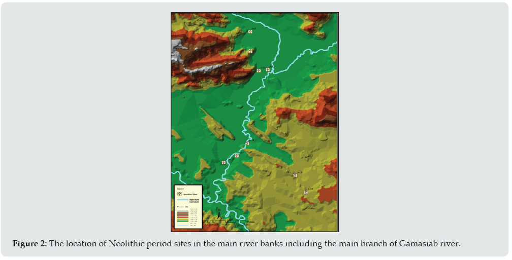 Figure 2: The location of Neolithic period sites in the main river banks including the main branch of Gamasiab river.