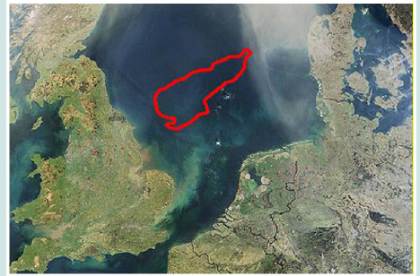 In this regard, there is a particular geographical reality, which thousands of years ago was actually “swallowed up by the sea and vanished”, to which one can associate some reason for identifying it with that low island, suddenly disappeared, mentioned in the Timaeus. We are referring to Dogger Bank, a large sandbank in a shallow area of the North Sea about 100 kilometres off the east coast of England, which extends over about 17,600 sq km [55] (Figure 6).