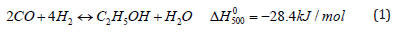 Syngas coming from the reforming of renewable sources such as biogas and landfill gases can be converted directly into ethanol in a catalytic synthesis reactor with significant yield and selectivity [2,3]. The syngas production outcome at various temperatures is presented in the Table 2 below [1]. Reforming of the above gases can take place catalytically usually in a fixed bed catalytic reactor or in a catalytic membrane reactor [4-6]. Mostly Ni, Cr, Rh, and Ru catalysts and their mixtures, are used in the reforming of biogas and landfill gases after their initial purification. Pd, Pt, Co and Fe catalysts have been also used but with lower yields in synthesis gas. The direct ethanol process from the CO and H2 gas constituents is projected more economic and efficient from other competent methods of ethanol synthesis [2,7,8].