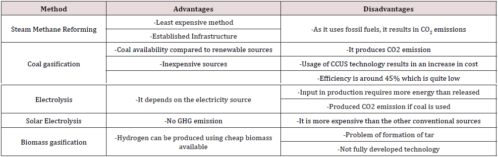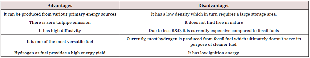 Every alternative fuel for a cleaner environment has its own advantages and disadvantages. Hydrogen provides a number of ways in which it can be produced. Using hydrogen, it is possible to store electricity which discourages the production of electricity from fossil fuels. Benefits such as lower GHG emissions and cleaner air can be achieved from the usage of hydrogen in various sectors [16-19]. Relevant targets made by the countries can be achieved by adding hydrogen as fuel in their energy mix. Hydrogen storage allows generating renewable energy during its peak generation time and can be utilized at its low point of generation. Traditional coal and gas power stations could be decommissioned as it is possible to have reliable storage of energy with help of hydrogen. Having a system that also serves the hydrogen in the transport sector brings further benefits. Encouraging hydrogen transport is advantageous in promoting cleaner transport technologies, further reducing emissions in accordance with policies. This also provides cleaner air and therefore enhances air quality in cities as pollution levels will decrease. Power and transport application can be combined as it serves two sectors with one infrastructure system. This will ultimately reduce the initial investment required dramatically and makes the business more financially feasible. Current automobile fuel can be replaced with hydrogen fuel cells. They essentially combine the energy density and the convenience of liquid fuels with the clean and efficient operation of electric vehicles [20]. Although certain aspects of the technology such as efficient onboard storage still require some improvement, there are no reasons why hydrogen couldn’t become an equally convenient and attractive transportation fuel as diesel or gasoline is today.