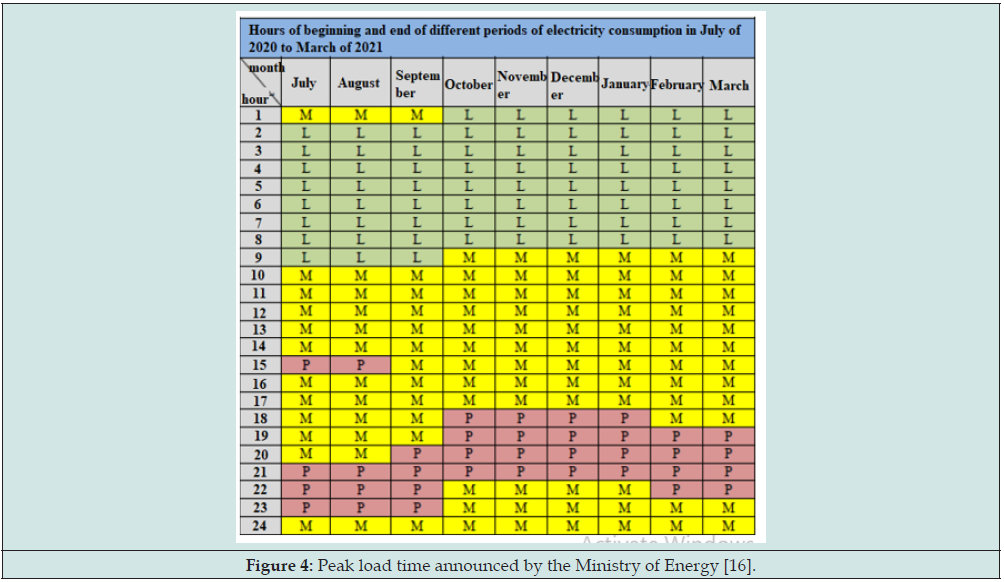 Figure 4: Peak load time announced by the Ministry of Energy [16].