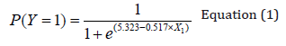 In equation (1), P (I = 1) is the probability of obtaining a poor neurological outcome according to GCS at discharge from ICU (X1) and e represents the base of the Neperian logarithm approximately equal to 2,71828.