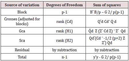 where Cdˉ is the generalized inverses of Cd with the property thatCC ˉ C = C. The sum of squares due to crosses are Q Cd Cdˉ QCd withd.f. = rank (Cd) for designs d with the expectation and variance of Qd being