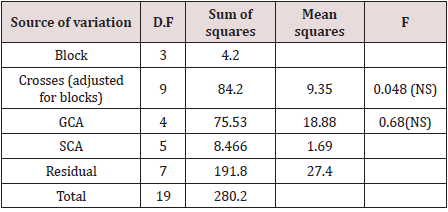 Table 5: Estimates of the specific combining ability effects and their estimated error on number of tillers.