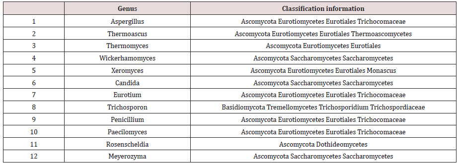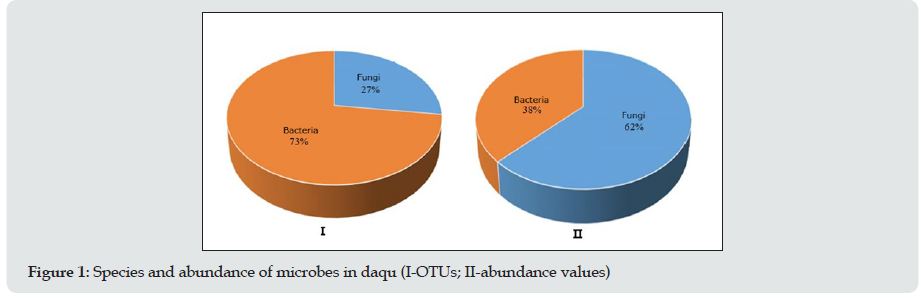 Chinese baijiu is one of the world’s oldest distilled alcoholic beverages and is very popular in China. It uses daqu as the fermentation starter, which is a saccharifying and fermenting agent that has a significant impact on the flavour of the product [1]. However, the daqu is different when used in baijiu brewing with different technologies. For example, Jiang-xiang baijiu uses a daqu with a higher temperature in the fermentation process, but Qing-xiang baijiu uses a daqu with a lower temperature in the fermentation process [2]. Moreover, the different kinds of daqu use different raw materials. Therefore, the microbial structure should be different for the daqu for the different types of baijiu. The microorganisms found in daqu have been analysed and reported in the literature; for example, in 2007, Yang Daiyong et al. used the selective culture method to carry out a pilot study of the microbial composition in daqu from Maotai [3]. In 2010, Meng Zhen et al. used PCR-DGGE technology to analyse the bacterial community structure of daqu and found that Firmicutes, Lactobacillaceae, Bacillaceae and Thermoactinomycetaceae were the main bacteria [4]. In 2020, Chen meng-en et al. used the selective culture method to identify Pantoea, Bacillus, Leuconostoc, Thermoascus, Aspergillus, and Thermomyces in Tao-rong daqu [5]. In 2020, Sun li-lin et al. used high-throughput sequencing technology to identify Oceanobacillus, Bacillales, Aspergillus, Thermoascus and Thermomyces in Jiang-xiang daqu [6]. However, this previous research perhaps involved only one kind of daqu and perhaps used the traditional culture method, yielding a large error value [7-10]. High throughput sequencing simultaneously sequences several million to billion DNA molecules and allows in-depth, meticulous, and global analysis; hence, it is called deep sequencing. It enables the rapid and convenient determination of the complicated microbial structure of a sample. The analytical ability and precision of PCR-DGGE technology is markedly more advanced than those of 16S rDNA sequence homology technology, which was the first method of analysing complex multi-strain samples and, at present, has not been used for analysing the microbial structure of daqu from different types of Chinese baijiu [11-14]. This study used high-throughput sequencing technology to research and analyse microorganisms in the main type of baijiu of Nong-xiang daqu, Qing-xiang daqu, Jiang-xiang daqu, Zhima-xiang daqu, Chi-xiang daqu and Feng-xiang daqu.