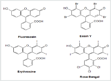 Photocatalysis is a rapidly developing area of photochemistry, catalysis, material science. The appearance of a new Journal of Photocatalysis testifies to this fact. Photocatalysis is homo- or heterogeneous catalysis by molecules [radicals] in the electronically excited singlet or triplet states [excited doublet or quartet states]. There are several recent review articles devoted to photocatalysis [1-3].This brief review article is devoted to photocatalysis with xanthene dyes (XD) in homogenous liquid solutions. These and some other dyes proved to be effective photocatalysists of diverse liquid-phase chemical reactions, see below. A mechanism of action of XD is our main focus. The structures of XD are presented below. See scheme 1. Scheme 1 does not exhaust all the known XD. XD is used also as mono- or di-substituted, either sodium carboxylates or sodium carboxylates and sodium alkoxides. Some XD structures have a methyl or an ethyl substituent. It is necessary to refer to the original publications for details.