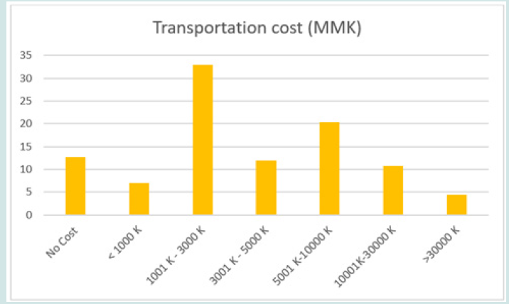 Figure 2: Various transportation cost (MMK) for each HD session of patients on MHD (MMK= Myanmar Kyats) (3,000 MMK= 1 USD).