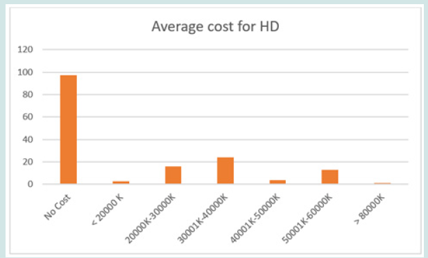 Figure 3: Cost (MMK) for each HD session of patients on MHD (MMK= Myanmar Kyats) (3,000 MMK= 1 USD).