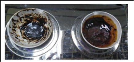 Phyllanthus emblica fruits dried cut pieces 500g were carefully crushed using in an electric grinder. Then, the crushed fruit pieces were extracted with 500ml of 95% of ethanol. The crushed pieces of Phyllanthus emblica were packed into the Soxhlet thimble, lined with a cotton pad until the Soxhlet siphon tube. Extraction was initiated by heating at (~70 - 75) using heating mantle. This process was continued until the solvent in the Soxhlet siphon tube turned colourless. The solvent containing the fruit extract was cooled and concentrated using rotary evaporato (Rota evaporator, BUCCHI Corporation) as stated above. Next, the filtrates were collected in evaporating dish. The evaporating dish was placed on water bath to solidify the extract. Phyllanthus emblica ethanolic extracts are shown in evaporating dishes in Figure 5.