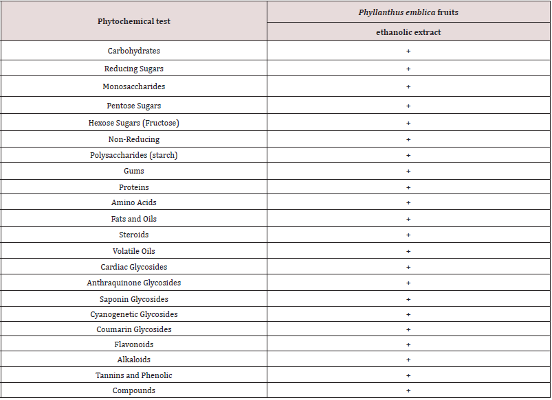 The percentage yield of the ethanol extract of Phyllanthus emblica fruits was 8.1% of maceration and that of Soxhlet was 12% respectively. The extractive value of the plant extract will be useful for the evaluation of crude drug. It is also important to know about the nature of the chemical constituents and to estimate the constituents extracted with the solvent such as ethanol.
