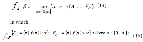 (12)Note that if A = ℜ is a nonempty class such that E, F ∈ ℜ, E ∪ F ∈ ℜ and E – F ∈ ℜ and g satisfies the λ-rule, then τ satisfies the finite λ-rule. The most ideal evaluation, E*, for the quality of the object is the [13,14] and an idea of the Sugeno integral introduced by [15], where the integral is defined over measurable sets. Let A ∈ A, A is a σ-algebra of sets in ℘(X); f ∈ F, F is the class of all finite non-negative measurable functions defined on measurable space (X, A). Function f: X ⇒ ℜ is called a measurable function iff: β is a Borel set and: