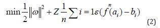 Here ε () is a dull loss function. Z is a penalty coefficient, used to balance the experience risk and trust range, and minimize the risk. The problem of finding the best hyperplane is transformed into a quadratic planning problem.