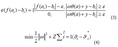 In the Formula ω is the autoregressive coefficient, which represents the weighted value of the approximate hyperplane in the high-order original space, and y is the deviation vector. The function f(a) is determined by training the parameters w and y of the usual function of risk minimization: