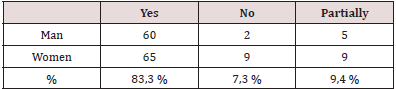 Table 5 Out of the total number of respondents, we find that with proper use of St. John’s wort, Chamomille, Geranium and Nepeta cataria, 71.3 persons have achieved the expected results. While the 20.7% of respondents partly achieved the expected results. 8% of respondents did not achieved the expected results in the proper use of St. John’s wort, Chamomille, Geranium and Nepeta cataria in order to improve health conditions in infectious diseases. Regarding classification of respondent’s male and female, in this matter in both sexes in the proper use of St. John’s wort, Chamomille, Geranium and Nepeta cataria have achieved the expected results. In both cases, volunteers with proper use showed a partial effect or no effect. In the classification of respondents by age, we can conclude that among those 40 to 60 years reported that they had achieved positive results with these medicinal plants. Among subjects 20 to 40 years has the highest number of persons who reported that they had achieved partial results in the proper use of St. John’s wort, Chamomile, Geranium and Nepeta cataria, despite most of them who said they fully achieved the expected results (Table 6). Most people over 60 years have achieved the expected results, but some of them responded with partially not. Whereas, among those 20 years and over 60 years in common is that the same number of respondents reported that they have achieved the expected results in the proper use of these medicinal plants.