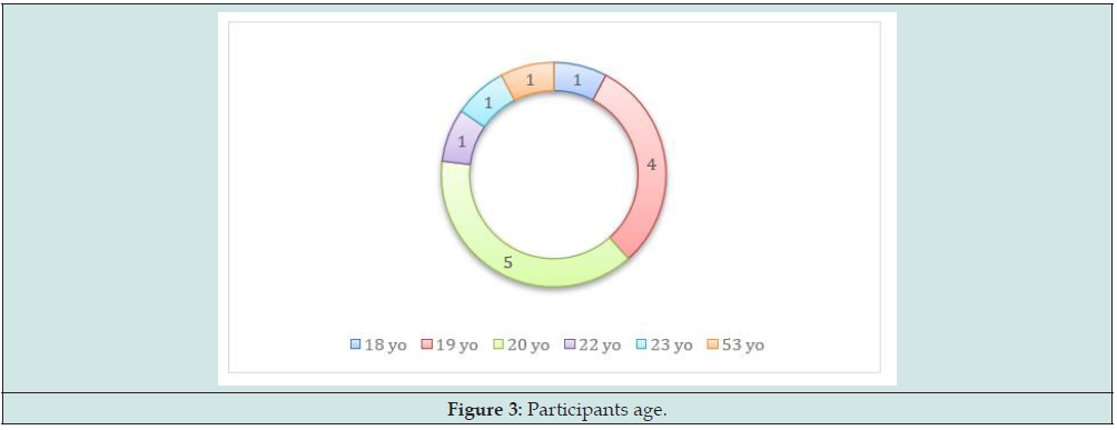 The second result is an analysis of the target audience, the students, we worked with a small staff of 13 people. They averaged 22 years of age and were almost equally represented, with seven young women and six young men (Figures 3 & 4). Following our survey, we found in particular that the transmission is mostly within family (93%) %) compared to outsiders (6%) (Figure 5). Maternal ancestry (68%) transmits most of the knowledge about medicinal plants compared to paternal lineage (16%), which is consistent with previous studies by Picking and collaborators [9]. As with the work done by Drane, in Martinique, where they also show that with the passage of time “transmission is lost” [10], this evidence was also highlighted according to the participants of the present survey. However, despite this trend of loss of knowledge about medicinal plants, the young people interviewed showed a desire to continue acquiring knowledge about the use of medicinal plants (Authors’ observation).