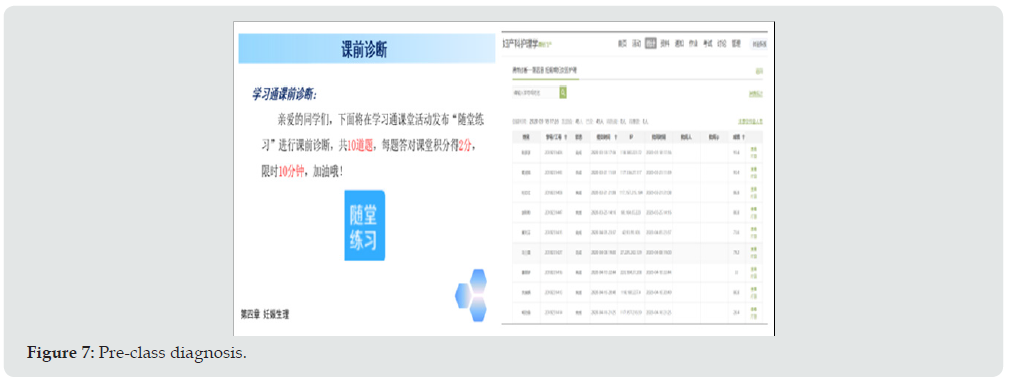 First by super star learn before diagnosis, (Figure 7), test, the effect of the students to preview before class and then combined with the corresponding diagnosis before class courseware (Figure 8), according to students knowledge to master the situation (Figure 9) interpretation of the topic, error rates higher title focuses on to the student, resolve the difficult point, help students to further strengthen the knowledge. The topic of the pre-class test must be carefully designed, each topic represents an important knowledge point, the teacher can expand the relevant knowledge point, with the surface, in the form of branches to expand the knowledge point, let the students learn to think. The pre-class test questions are generally 10 (can be adjusted according to the content of the lecture), the difficulty is moderate, the test time is 10 minutes (generally 1 minute for a question). Diagnostic questions before class design mainly through the network teaching platform or learning “in-class exercises” complete, teachers need to design a good topic, decided on the basis of the condition of the course content, the school and title released, can be released in ten minutes before class, also can undertake, first in the class to detect student learning before class, provide reference and basis for teachers’ class earnestly in the. After the pre-class diagnosis, the whole chapter will be lectured in series, and various classroom activities (Figure 10) will be released in class to improve students’ attention and test their learning effect.