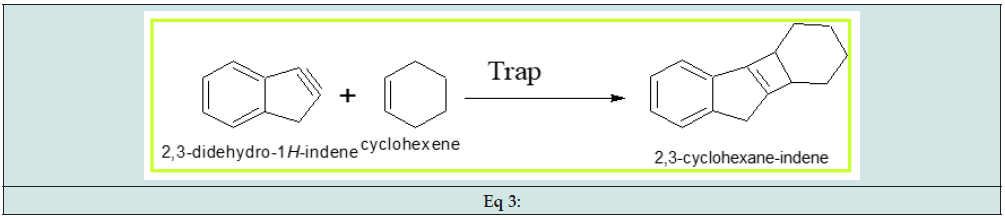 The compound 2,3-didehydro-1H-indene trapped cyclohexene to produce 2,3-cyclohexane-indene. (Eq 3)
