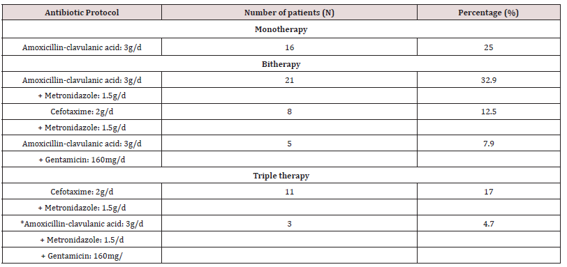 treatment was medico-surgical. The evolution was favorable in 59 cases and death was reported in 2 cases following septic shock.