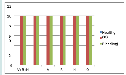 The periodontal status of the participants as measured by the modified Community Periodontal Index was summarized in Table 5 below. Table 5 and Figure 5 shows that none of the 64% dentate (n=28) patients have healthy periodontal condition, ALL the dentate (28) participants have bleeding gums and periodontal pocketing, indicative of periodontal diseases.