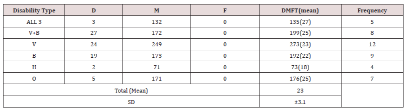 Moreover, this study contradicts the year 2000 study6 which indicated that there is a mark increased prevalence of Oral cancer in adults in Solomon Island. This is due to the religious belief of the participants. Even though their religious background was not obtained, most of the participants were members of the Seventh Day Adventist Church, which has a strong teaching of healthy diet and abstinence from alcohol, tobacco and areca nut chewing. Numerous evidence has shown the reason for poor oral health status of the disabled adults. Waldron S et al. [18] pointed out that adults with visual impairments are unable to recognize signs of oral diseases and have limited ability to maintain oral health. Difficulty accessing oral health services without assistance is one other reason why visually impaired adult continue to suffer poor oral health. Peterson et al. [22], pointed out that adults with body impairments have difficulty caring for themselves regarding oral hygiene practice, unable to access services is also highlighted as one factor contributing to poor oral health status in adults with body disabilities. Lack of communication is the major obstacle facing hearing impaired adults. Communication is a two way process, where a speaker and a listener are involved. In this case, there is no listener. This barrier in delivering oral health hygiene by dental professionals and restricting the victim to hear and understand the oral health education continue to contribute to the poor oral health status of hearing impaired adults. This was highlighted by Waldron and Santhosh [18,19]. Other factor limiting the full participation and practice of good oral hygiene by the disabled adults were fear and anxiety, financial constraint, physical barriers, lack of time and domiciliary equipment and transportation [30-34].
