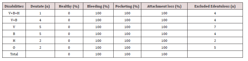 Adults with other disabilities such as mental functions, other systems of the body, and environmental factors explained in the ICF classification. Severe disabilities that prevent proper oral examination and use of medications that have effects on oral health will also be exclusion criteria.
