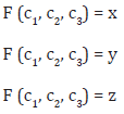 Where x, y, z are values of samples to be matched & c1, c2, c & c3 are concentration of colour required. In practice, the reflectance values at 400 to 700 nm are measured from dyed solid textile surface& those reflectance data are processed for K/S Values generation for ultimate matching. Reflectance value vs. concentration of dye is non-linear & non additive & linear, so this is used as basic data for handling colour match predicting. As per Kubelka Munk Equation.